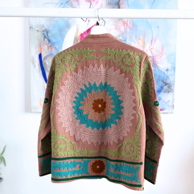 Mandalika est une veste Suzani en coton fabriquée et brodée à la main